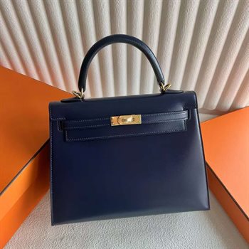Kelly 25CM UB Factory Kelly Box Leather Ck73 Gem Blue Gold Hardware 25cm Full Handmade Ghw August 20, 2024 0