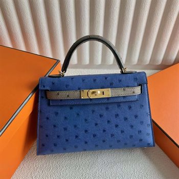Mini Kelly UB Factory Mini Kelly KK Ostrich I7 Azure blue & Ck81 Turtledove grey Silver Hardware 19cm Full Handmade Phw August 20, 2024 0